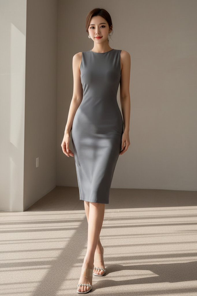Unit price perElevate your wardrobe with this Casual Dress — a refined, warm-weather essential crafted from a luxe blend of viscose, silk, and spandex. Its slimline silhouette gracefully skims the body, while the subtle waist shaping offers a naturally flattering fit. Designed with a sleeveless tank neckline, this midi-length piece exudes quiet sophistication — perfect for sunlit days and balmy evenings alike.