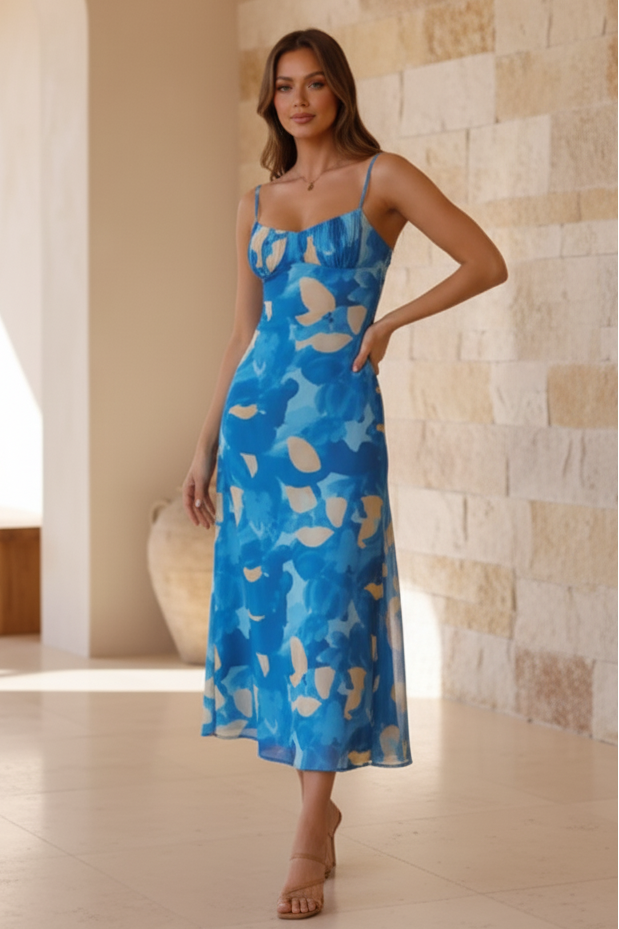 A love letter to feminine style, the Lila Midi Dress is your go-to for sun-drenched events and balmy evenings. Cut from a breezy floral-textured fabric, this maxi silhouette flatters with its softly padded bust, gathered detailing, and barely-there straps. The open back with a twisted strap adds an element of surprise, balancing elegance with modern flair. In a vivid rosé pink hue, it's made for moments worth remembering.