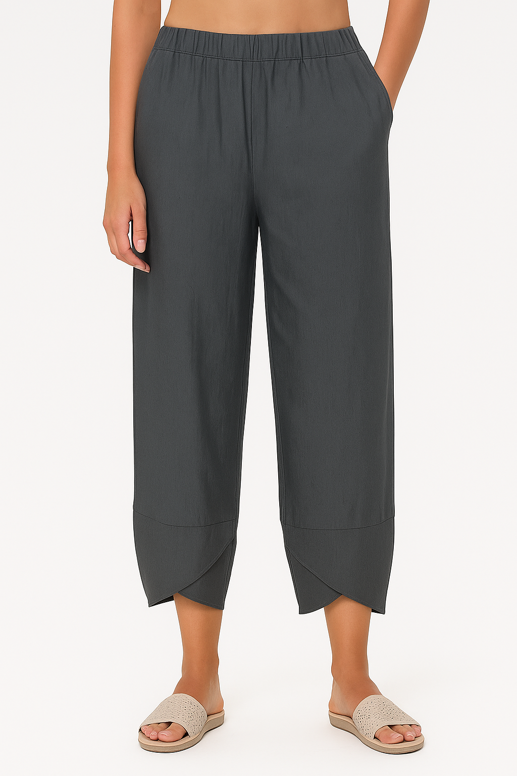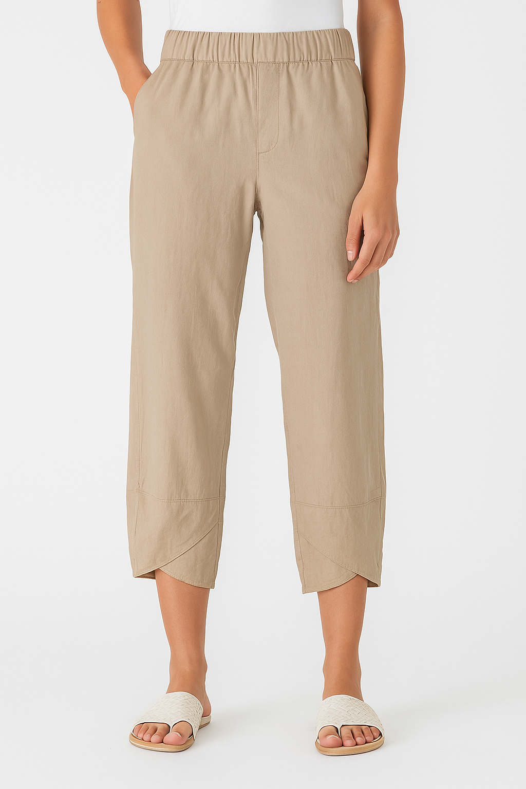 The Mira Cropped Linen Pants is designed for relaxed elegance with a modern edge. Crafted from a breathable fabric blend, it features a soft, airy drape and a cropped length that’s perfect for warm days. Its minimalist silhouette balances comfort with style, making it an effortless go-to for everyday dressing.