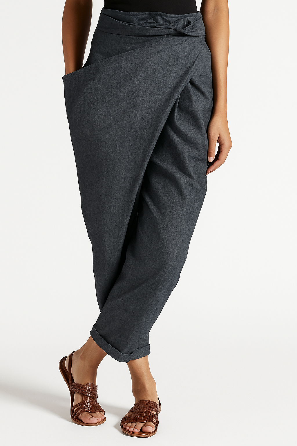 Style the Sophia Pants with a fitted camisole and strappy sandals for a relaxed brunch look, or pair it with a crisp blouse and mules for an elegant office-ready outfit. Its versatile wrap design makes it suitable for both casual and elevated occasions.