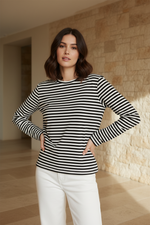 Timeless monochrome stripes in a flattering, fitted silhouette