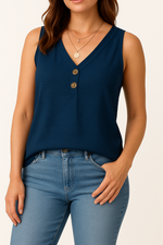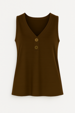 Effortlessly refined yet relaxed, the V-Neck Tank Top is crafted from a soft, breathable cotton blend that drapes beautifully on the body. The sleeveless cut and subtle V-neckline with button detailing create a modern silhouette that’s both flattering and versatile. Designed in a warm earthy tone, it’s the perfect piece for days when you want comfort without compromising on style.