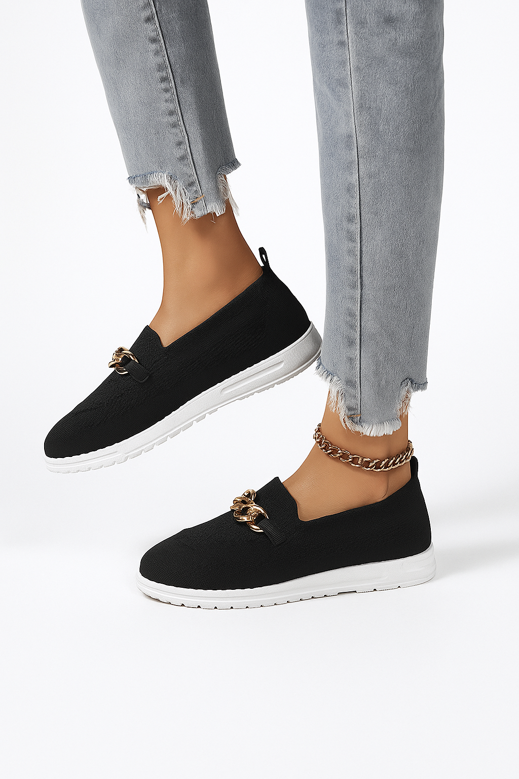 Unit price perThe Comfort Casual Loafers combines effortless elegance with everyday comfort. Crafted from a breathable knitted fabric, these slip-on shoes offer a relaxed fit while maintaining a sleek silhouette. Featuring a delicate gold chain accent, they strike the perfect balance between casual and sophisticated, ideal for those seeking a stylish yet comfortable footwear option.