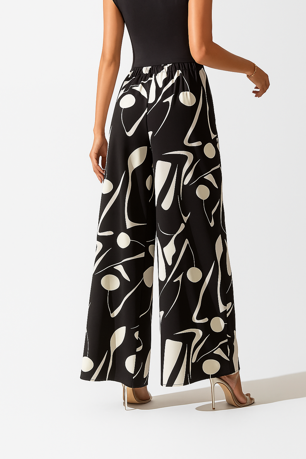 Unit price perThe Serena Print Wide-Leg Pants is designed to make a statement while keeping comfort at the forefront. Crafted from a lightweight, flowing fabric, it features a high-rise elastic waist and a relaxed wide-leg silhouette that moves beautifully with you. The bold monochrome print brings a modern edge, making it perfect for both everyday wear and evening occasions.